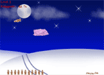 Mit einem Kissen müssen fallende Schokoladefiguren aufgefangen